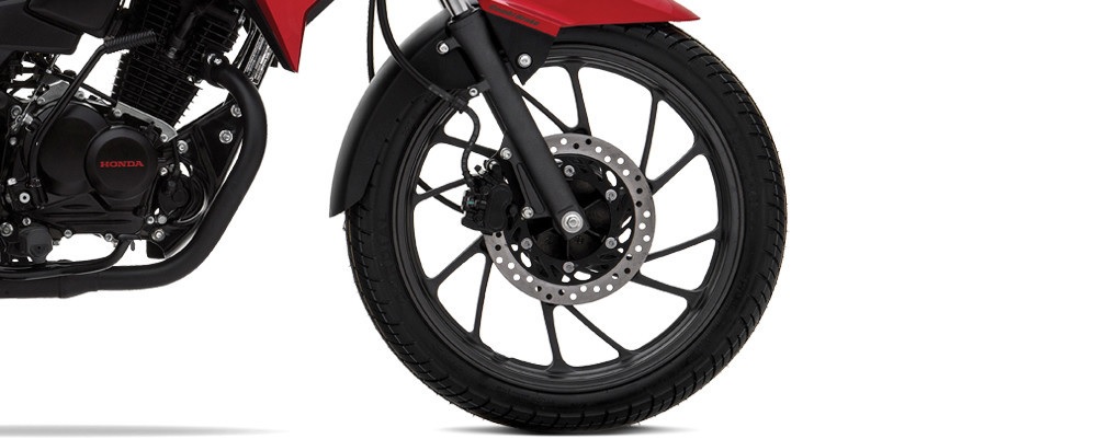 Freno a disco: su freno a disco delantero, junto al nuevo sistema de frenado combinado (cbs), hace de la cb125f una moto segura para el d?a a d?a en la ciudad.